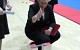 핀란드 복지부 장관 Liisa Hyssala님께서 한국시범단이 사용하는 시범용품을 올려놓고...격파해보는 장면.